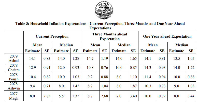 In the survey, 94.7 percent of respondents have expected price level to increase in next three months. Likewise, 94.4 percent of respondents have expected price level to increase over the next one year. The share of respondents expecting price increases in next three months has slightly increased from mid-April, 2022, while the share of respondents expecting price increase over the next one year has slightly decreased.