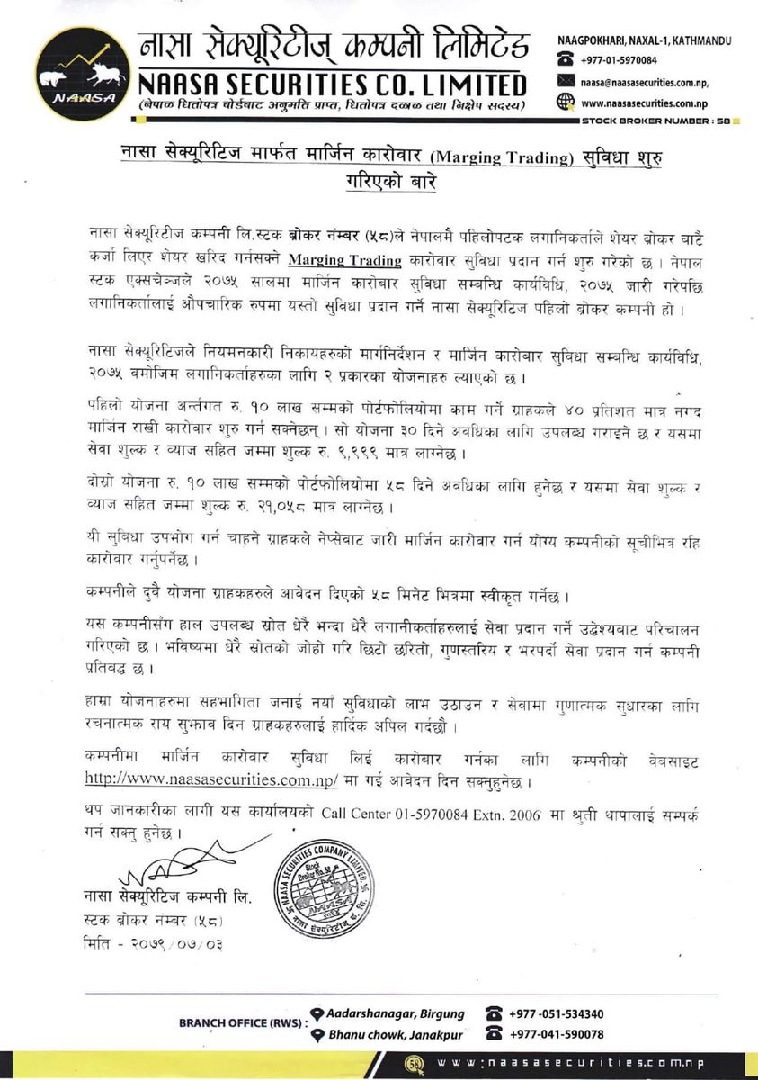 Naasa Securities aka broker no 58 is one of the top broker companies in Nepal.