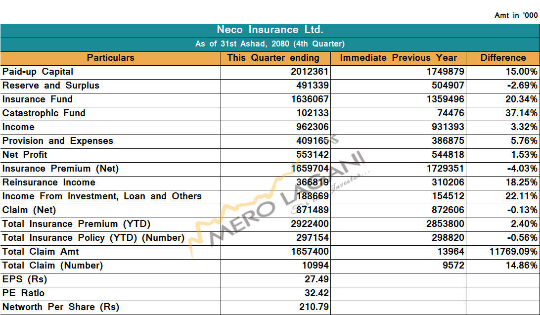 The company with Rs 2.01 billion in paid-up capital has reserve fund of Rs 493.1 million, life insurance fund of Rs 1.63 billion and disaster fund of Rs 102.1 million.